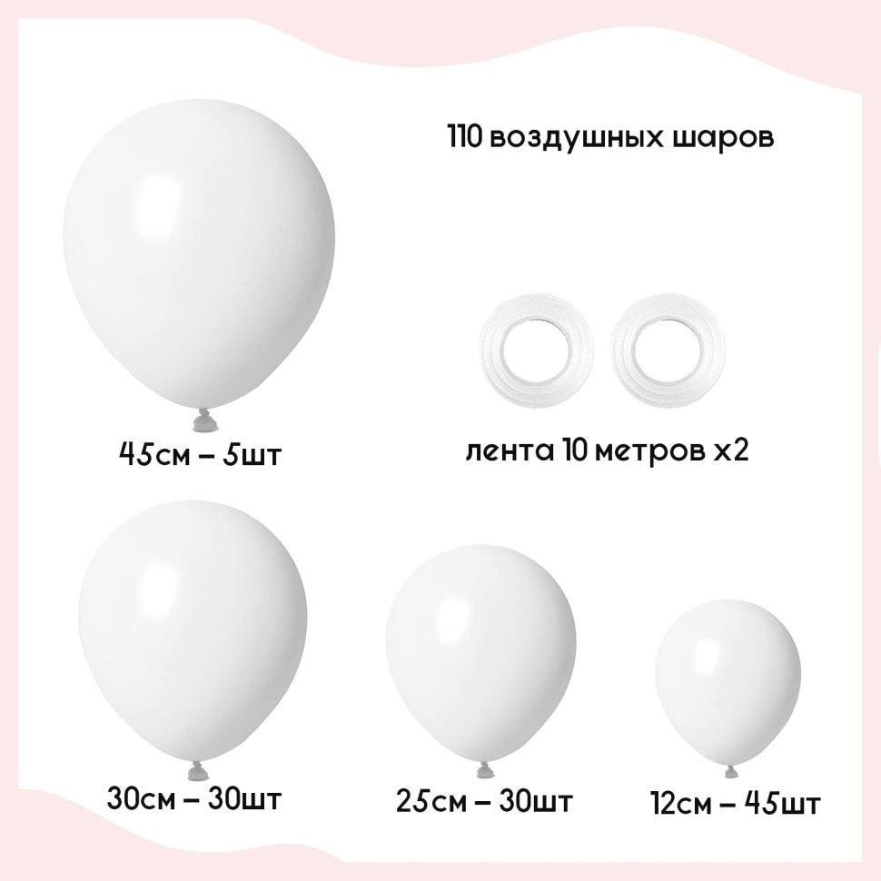 Большой набор воздушных шаров (110шт белый) - Характеристики