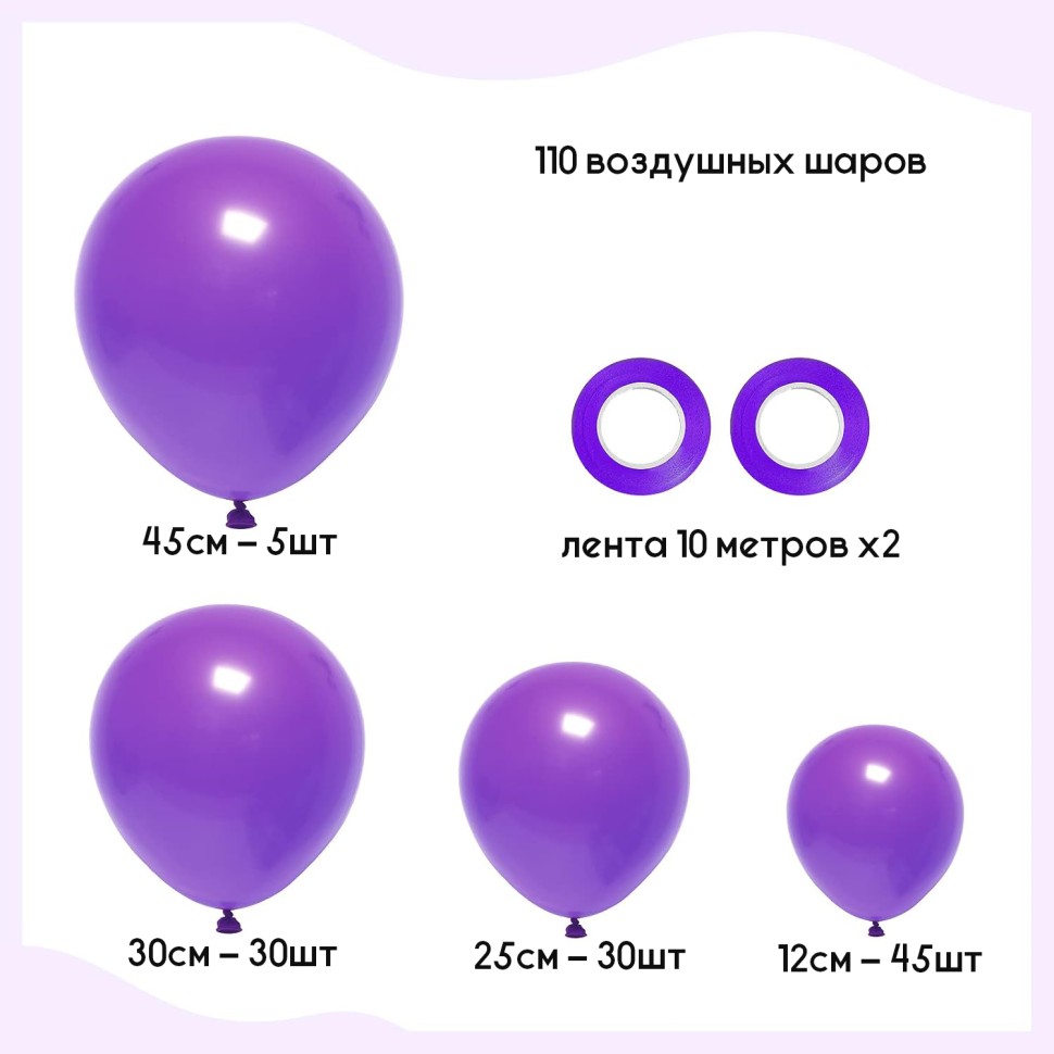 Большой набор воздушных шаров (110шт фиолетовый) - Характеристики