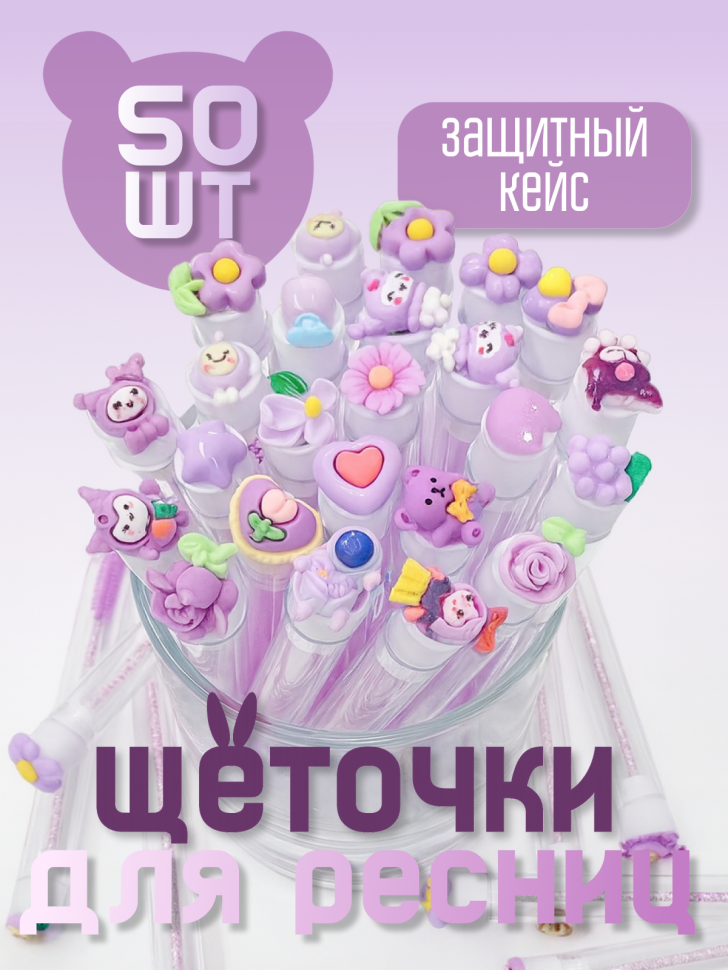 Набор щеточек для ресниц и бровей в колбе 50 шт (фиолетовые) отзывы