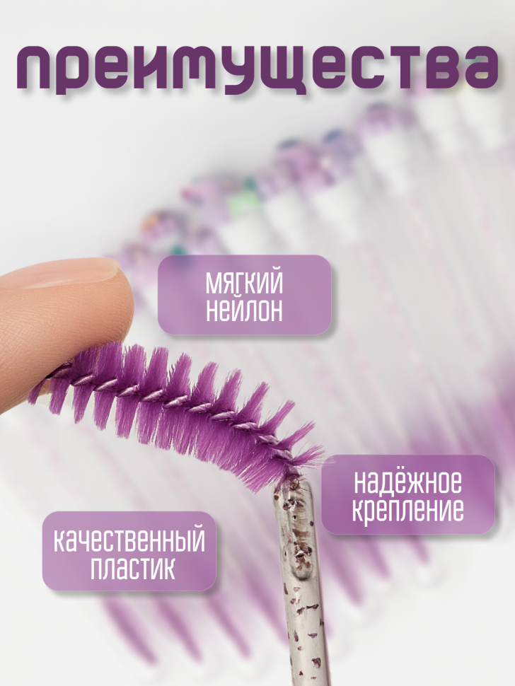 Набор щеточек для ресниц и бровей в колбе 50 шт (фиолетовые) - Характеристики