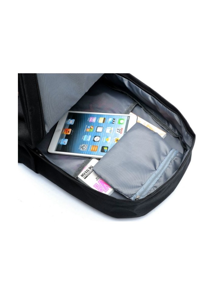 Рюкзак для школы или спорта. Легкий (всего 410 г), удобный и вместительный. Внутри и снаружи есть несколько отделений карманов, ручка для ношения в руке, вентилируемые широкие лямки и мягкая воздухопроницаемая спинка. Лямки регулируются по длине. На боковой поверхности рюкзака есть USB вход для наушников и зарядки (провода идут в комплекте). Рюкзак подойдёт для школы, учёбы, прогулок, путешествий и спорта. Объем: 35 л. Размер: 44*30*15 см. Цвет: Черный