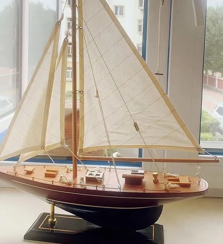 Деревянная модель яхты бордового цвета 55см - Характеристики
