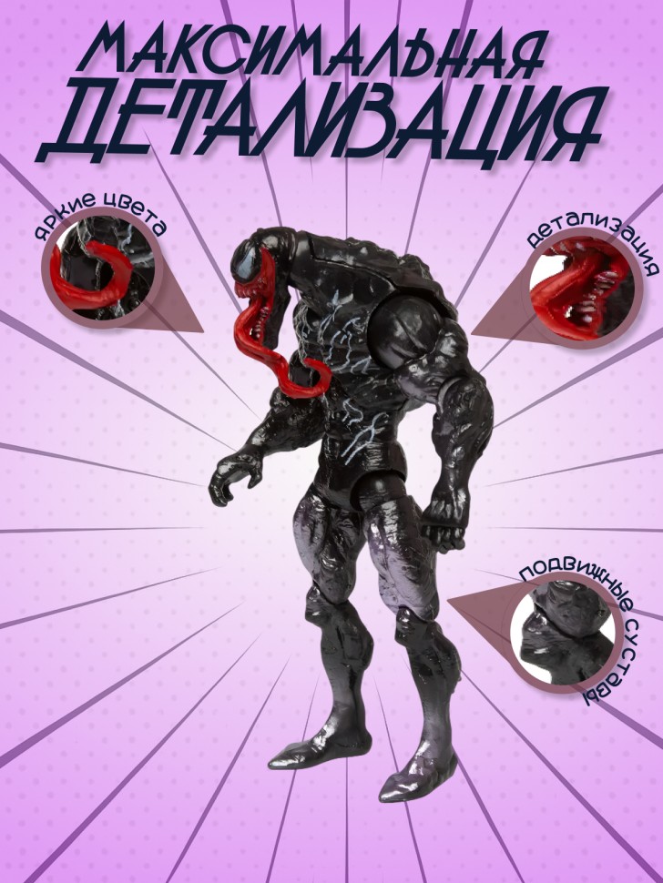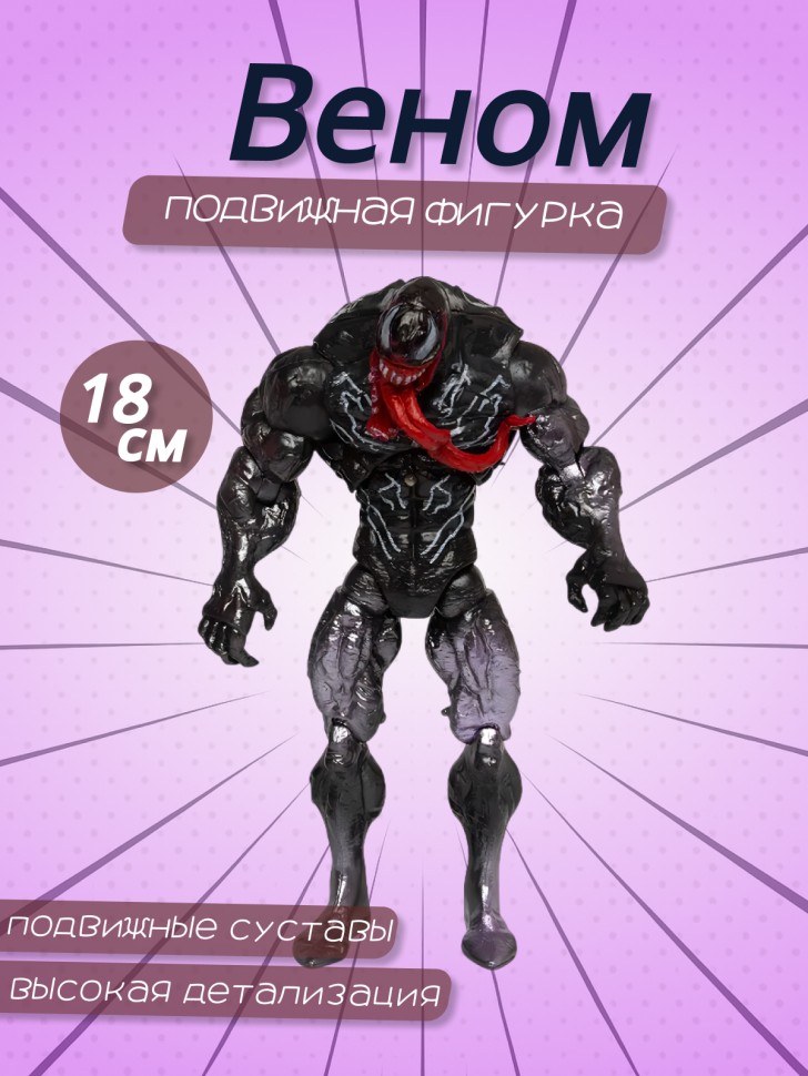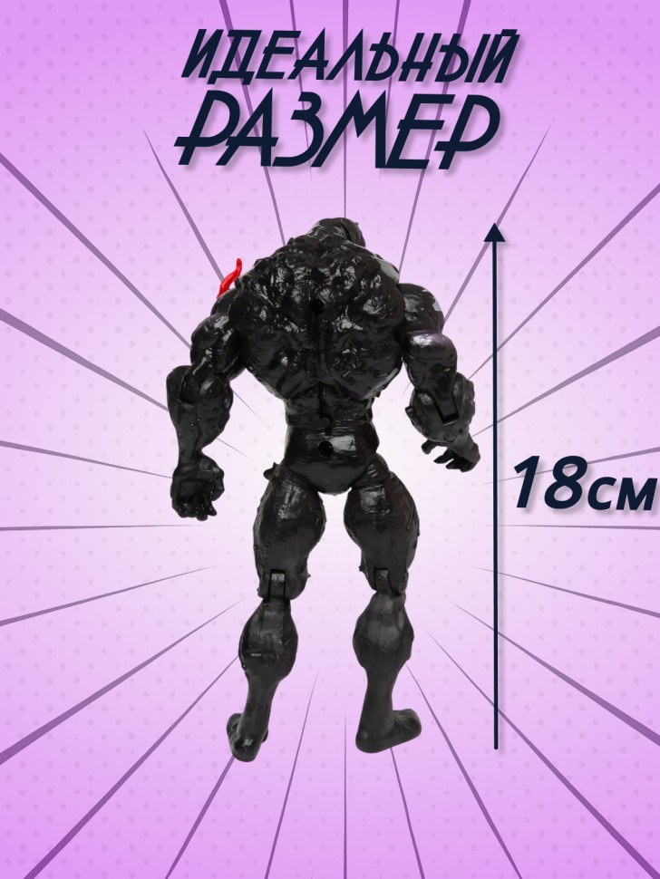 Существо инопланетного происхождения объединяясь с человеком образует Веном - главного врага Человека-паука. Фигурка олицетворяет главного героя одноименного супергеройского фильма. Подвижная фигурка размером 18 см.