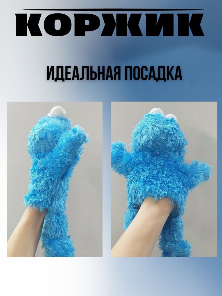 Мягкая игрушка Коржик - это синий лохматый монстр с глазами навыкате и без носа. Большой любитель печенья.
