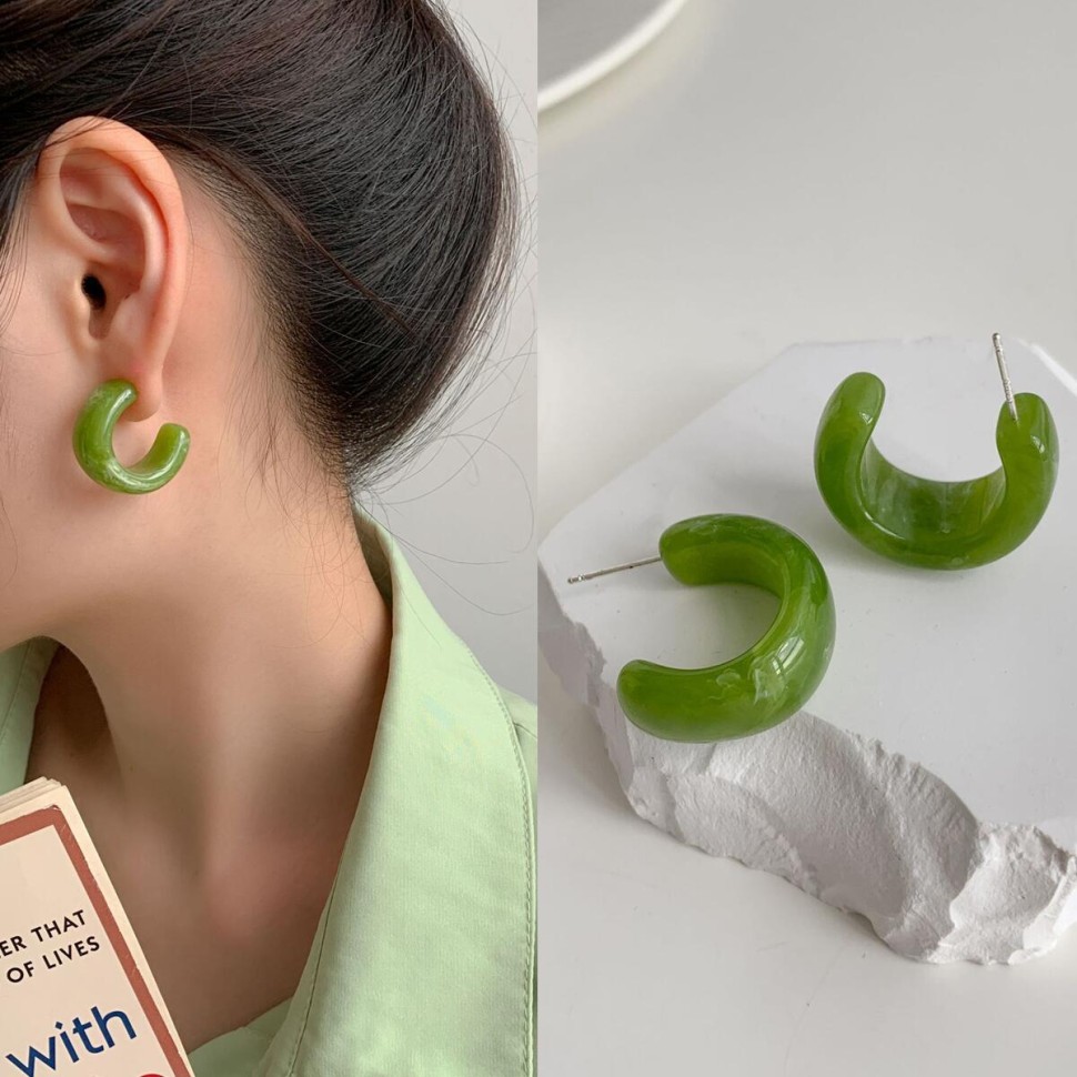 С-образные серьги из акрила (нефритовые) отзывы