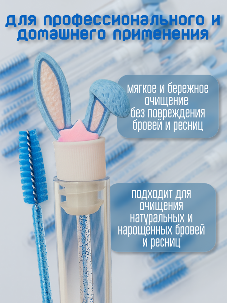 Щеточки для ресниц и бровей в колбе с ушками - (голубые) 50 шт. отзывы