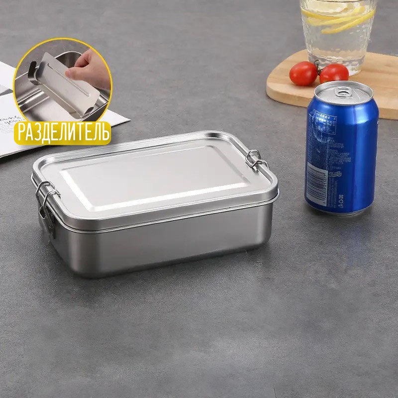 Стальной ланчбокс (два отделения 1400мл)
